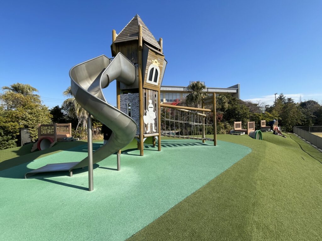 無料で利用できるスペースとして写真の「キッズの丘」、「キッズ広場」といった場所があり、3〜6歳程度向けのちょっとした公園のようになっています。