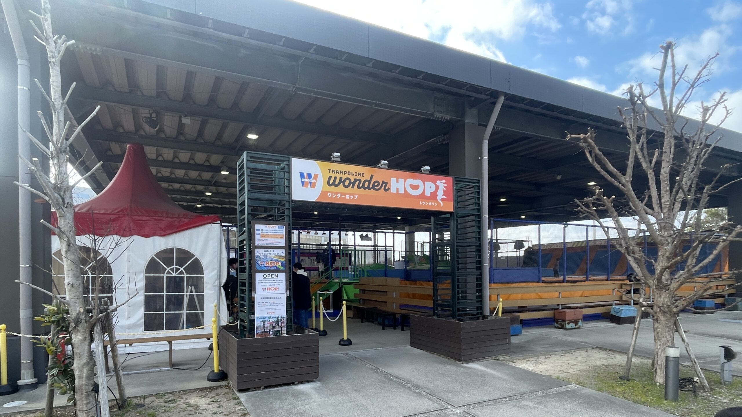 トランポリンパーク「ワンダーホップ」には、バスケットゴールやスラックラインなどもあり、4歳頃から小学生以上までめいっぱいトランポリンで遊べます!