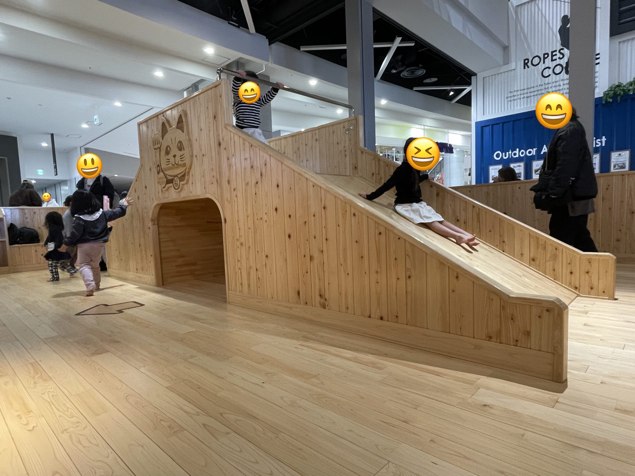 一方、小学生以上のこどもであれば、一般エリアで遊びつつモール外のワンダーフォレストきゅりおを利用することで、更に身体を動かして遊べます。